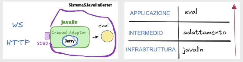 - livello di infrastruttura: qui opera javalin, gestendo i protocolli e prelevando dai messaggi le